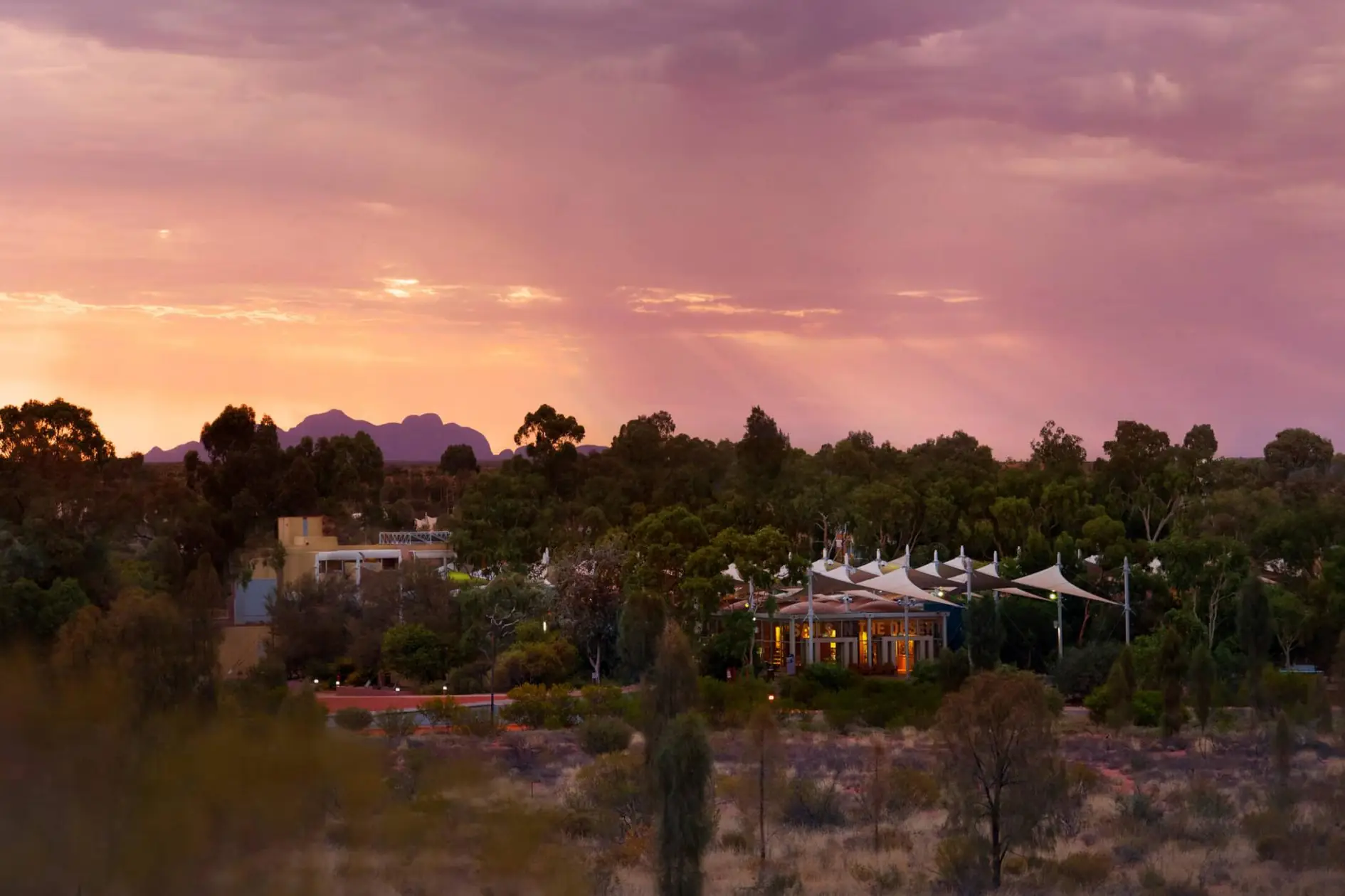 Indulgent escapes await at Sails in the Desert, where soaring white sails shade 228 lavish guestrooms and suites. Cool off in the sparkling swimming pool, or linger over unique Australian flavours paired perfectly with your favourite regional wines at one of the resort's dining, lounge, and bar options. Immerse yourself in one-of-a-kind Indigenous art at the stunning Mulgara Gallery, or be lulled into complete relaxation with one of the Red Ochre Spa's sumptuous treatments.
